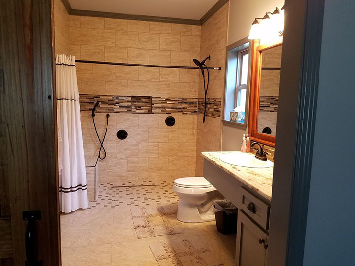 Very large kitchen area with bar, full laundry, master bath has handicapp accessible shower.