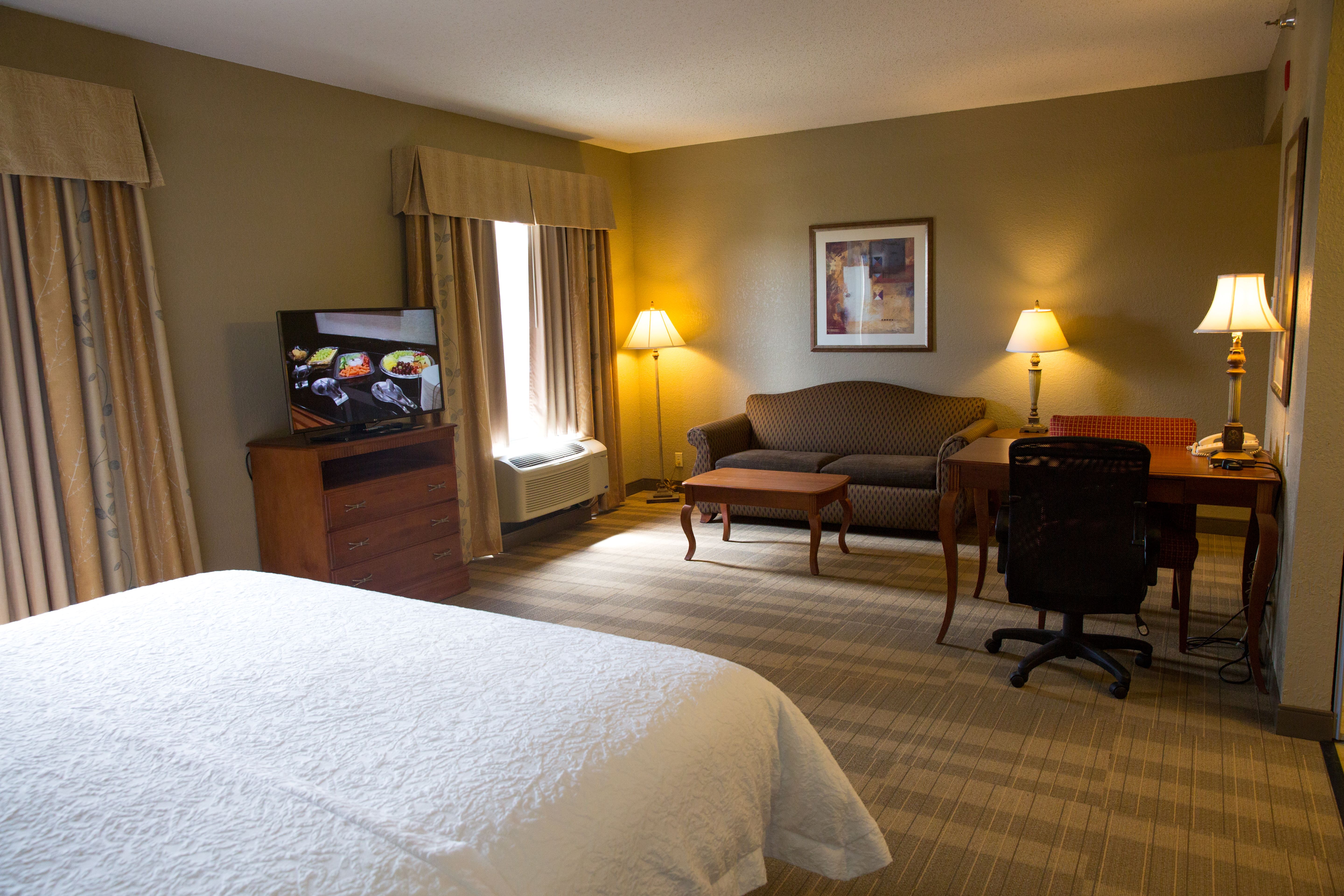 Expect warm Southern hospitality from friendly attentive staff passionate about making your stay memorable. Our spacious guest rooms and suites offer great value amenities such as a guaranteed clean and fresh Hampton bed®, 32-inch LCD HDTV, coffeemaker, mini-refrigerator, microwave and free internet access. Suites offer extra space, and comfortable accessible rooms are available.